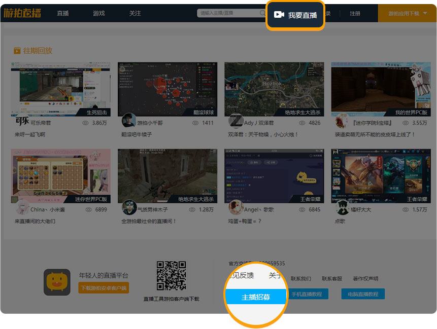 未进行主播认证的用户需登录PC端游拍直播,