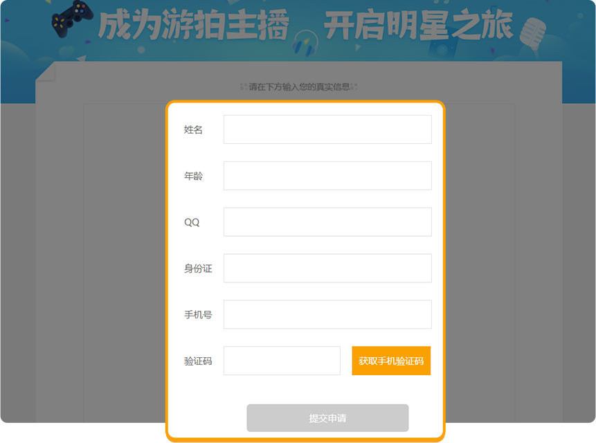 填写相应的信息进行主播认证
