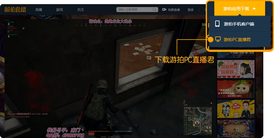 已进行主播认证的用户,下载游拍PC直播君并进行安装~