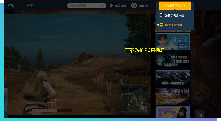 已进行主播认证的用户,下载 游拍PC直播君 并进行安装~